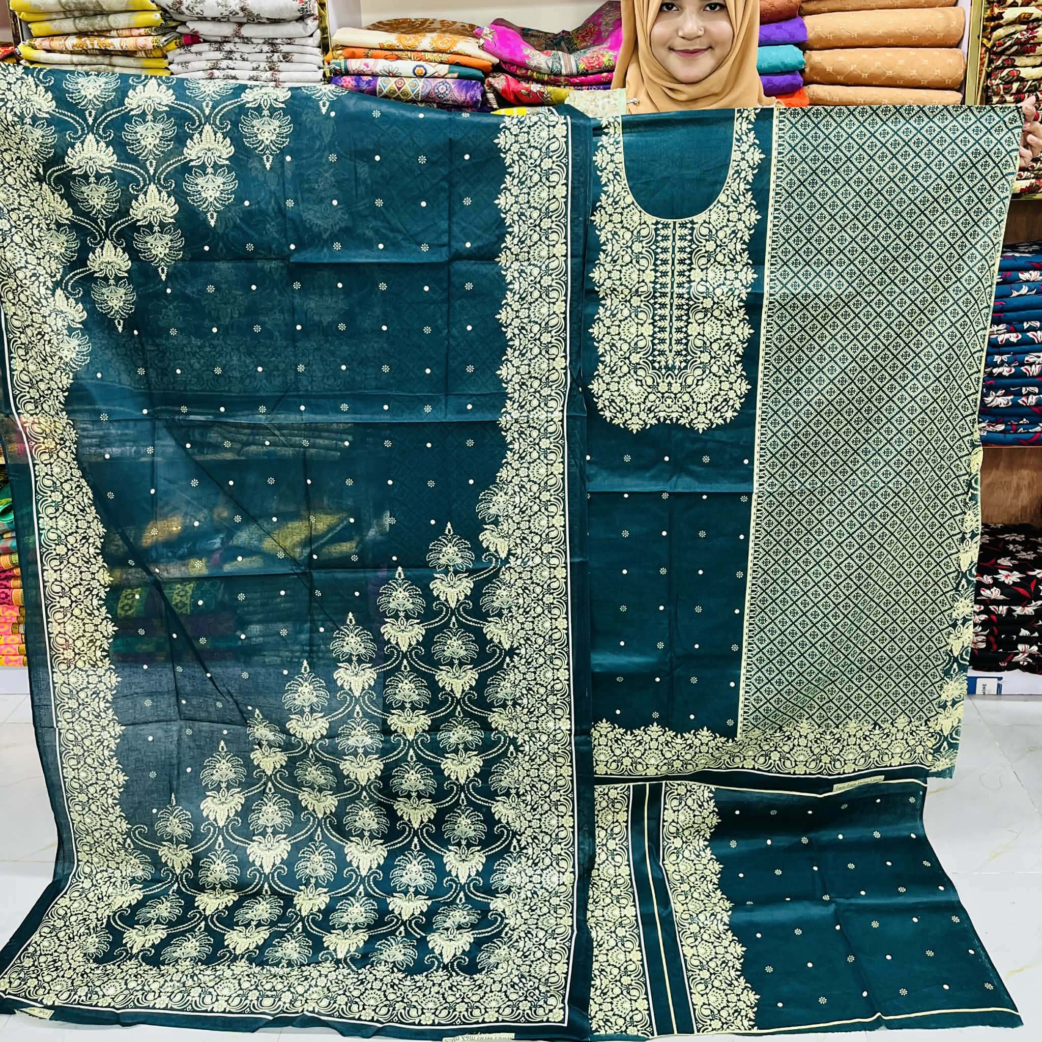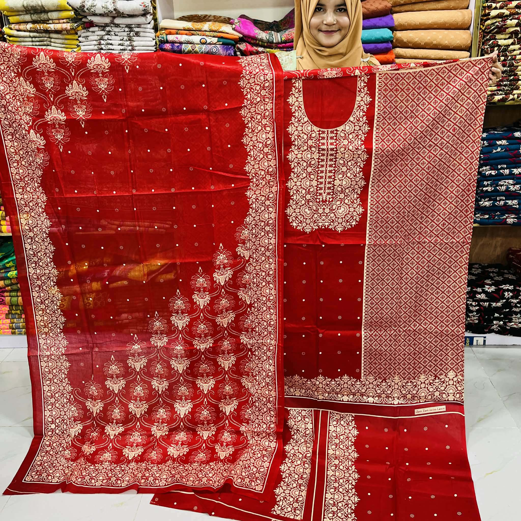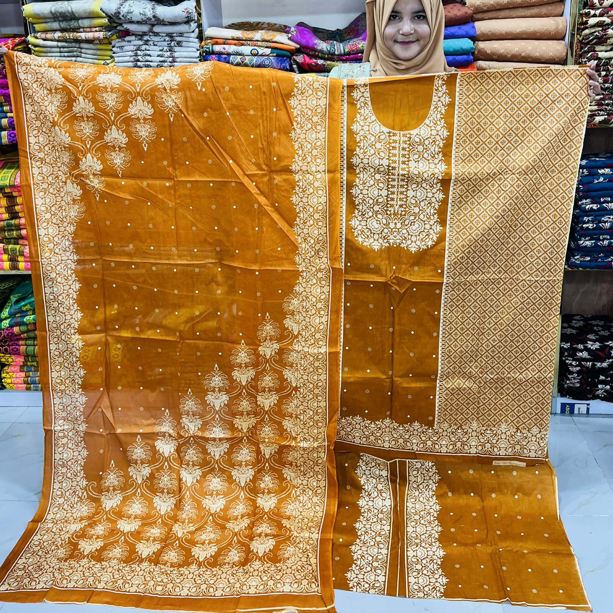New Unstitched Kashmiri Cotton ১০০ সুতি Three Piece for Women– Unstitched Dress